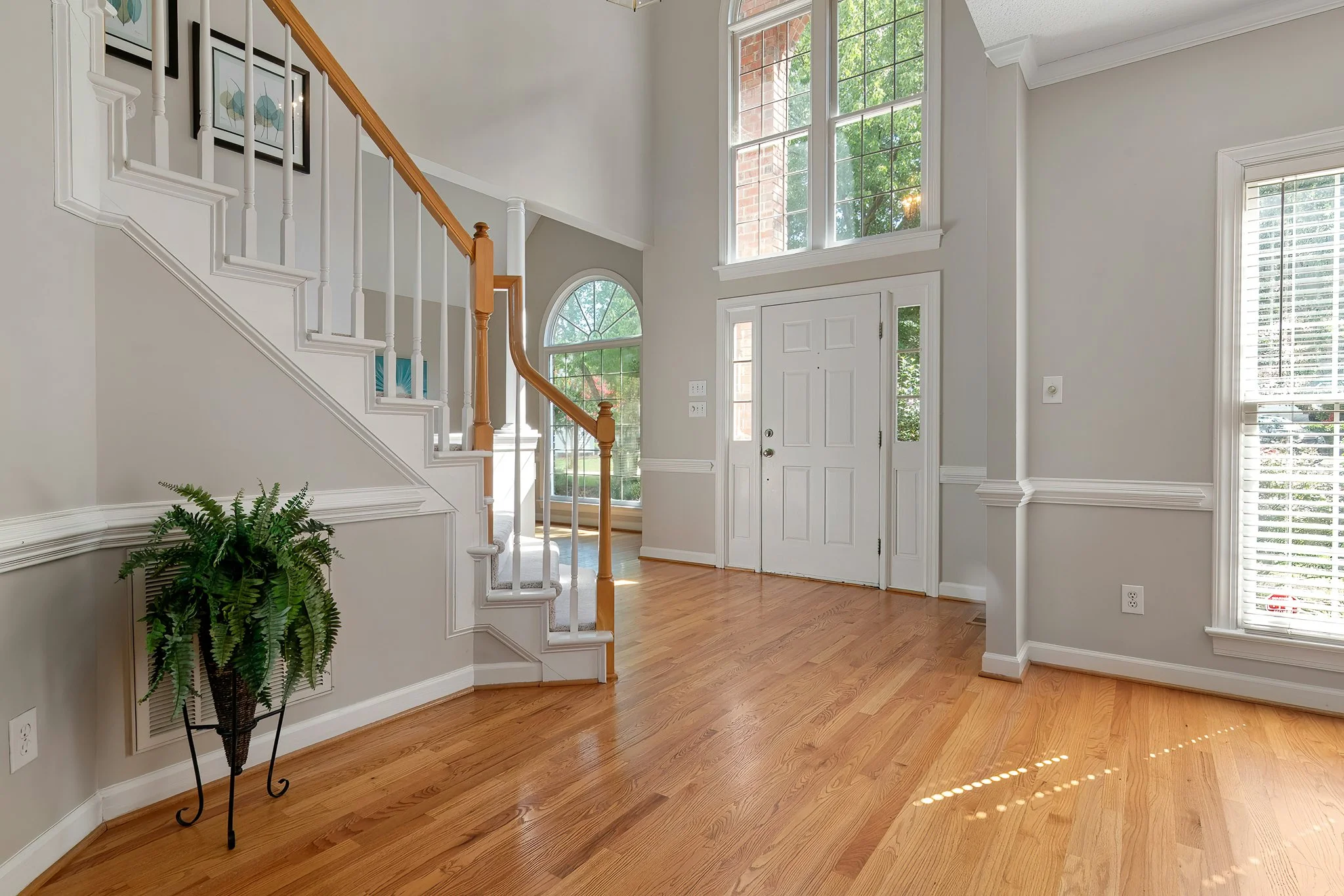 Together, these changes transform the foyer into a brighter, more intentional entry experience. The updated palette balances warmth, elegance, and modern style while preserving the home’s original character and architectural charm.